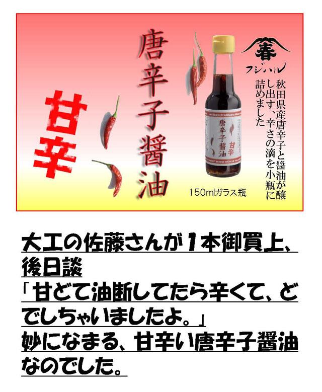 妙になまる、甘辛い唐辛子醤油を秋田からお届けです